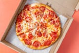 A sauceless pie topped with triple blend cheese, garlic, oregano and parmesan cheese